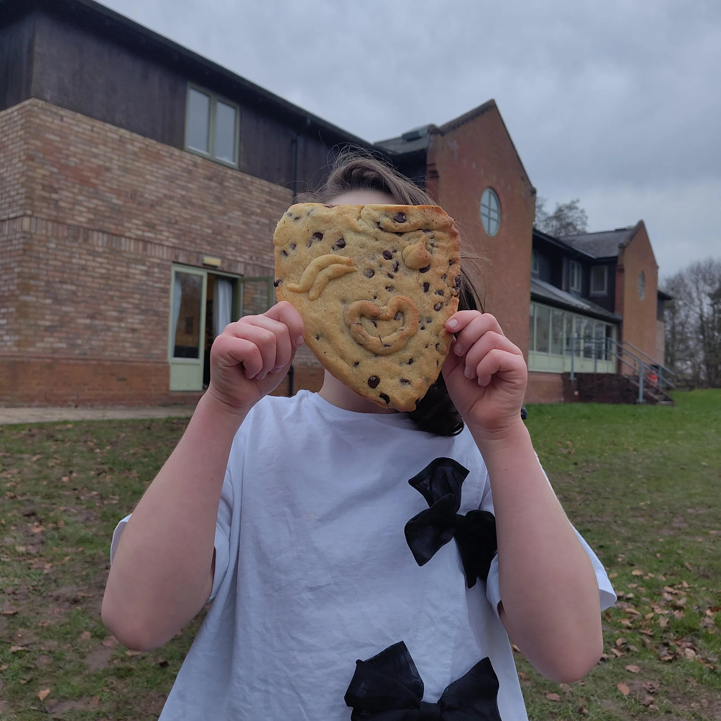 The giant cookie my kid made with the Kids group at Radical Routes Gathering